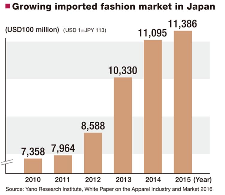 日本的进口时装市场每年都在扩大;