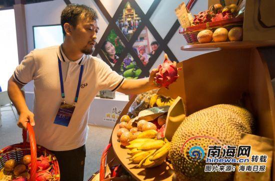 工作人员正在布置美丽乡村展馆。海南日报记者 武威 摄