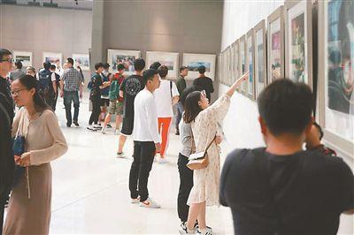 “向时代致敬——江苏省庆祝改革开放40周年主题美术作品展”将持续至10月17日,“辉煌巨变”江苏摄影艺术展将持续至10月7日(顾星欣)