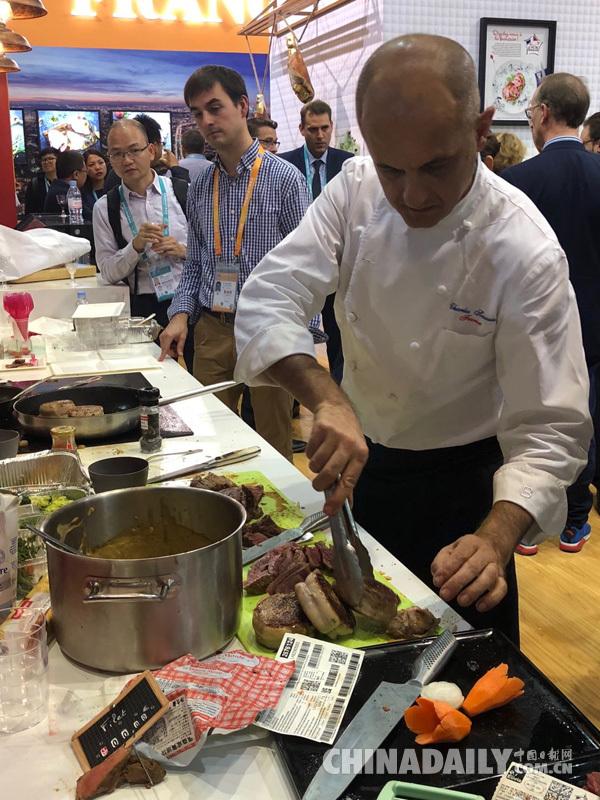 法国牛肉在进博会上亮相。(中国日报网记者 严玉洁 摄)