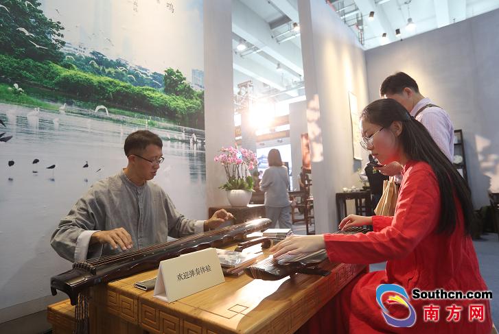 “广州非遗”特展专区是整场非遗展最受瞩目的亮点。现场按广式家居格局布置,客厅、书房、茶室、琴房一应俱全,岭南派古琴艺术传承人谢东笑在“永庆坊”内抚琴待客,粤韵琴声环绕,令观者仿佛走进了广府人家。
