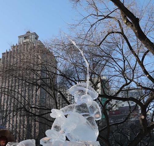 12月27日,选手们在比赛中完善冰雕作品。 当日,第十六届黑龙江省大学生冰雕艺术设计创作大赛在哈尔滨兆麟公园落下帷幕,全省高校共有99支队伍参赛。 新华社记者曹霁阳摄