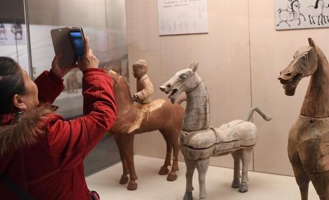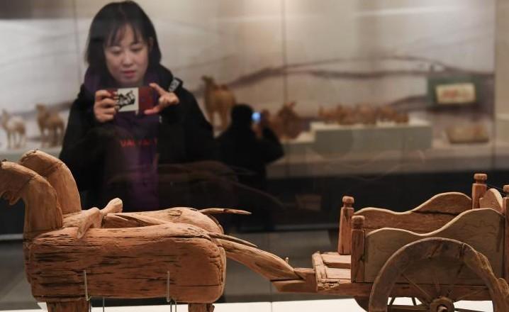 1月2日,正在甘肃省博物馆举行的“车尘马迹——丝绸之路的交通与交流”展吸引观者。中新社记者 杨艳敏 摄