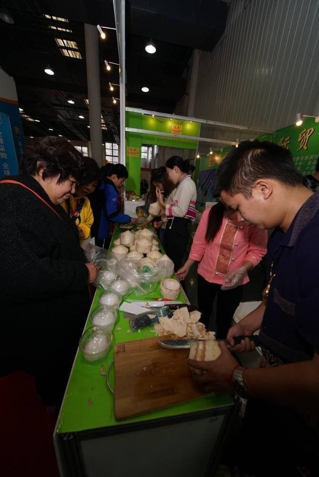 如有630多年历史的山西“益源庆”陈醋、晋升油茶、北京珐琅厂景泰蓝、江西景德镇瓷器、有1000多年历史明朝嘉靖年间就列为贡品的天津芦花海盐、四大名陶之一的钦州坭兴陶、冬阴功味的米饼、用鸡蛋做的皮蛋、限量版的黑刺榴莲、野生彩色山榴莲、上千颗A级老椰“椰蛋”、红青黄白火龙果、以及一带一路国家的老品牌产品等等纷纷亮相本届老博会,同时还有上千年的非遗技艺展示,贵州来的民族刺绣……