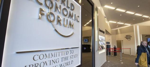 1月21日,在瑞士达沃斯会议中心,人们从世界经济论坛标志旁走过。 世界经济论坛2019年年会将于22日在瑞士小镇达沃斯拉开帷幕。 新华社记者 徐金泉 摄