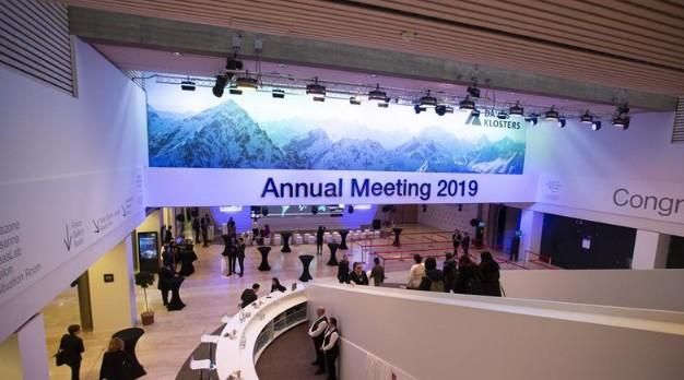 这是1月21日在瑞士达沃斯拍摄的世界经济论坛标志。 世界经济论坛2019年年会将于22日在瑞士小镇达沃斯拉开帷幕。 新华社记者 徐金泉 摄
