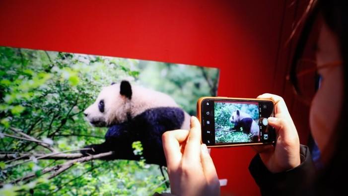 2月18日,在韩国首尔,一名参观者拍摄参展作品。 由中国驻韩国大使馆、首尔市政府共同主办的中韩旅游图片展18日在首尔拉开帷幕。参展作品通过丰富色彩和多元视角,为参观者展现了中韩两国各具特色的风光。