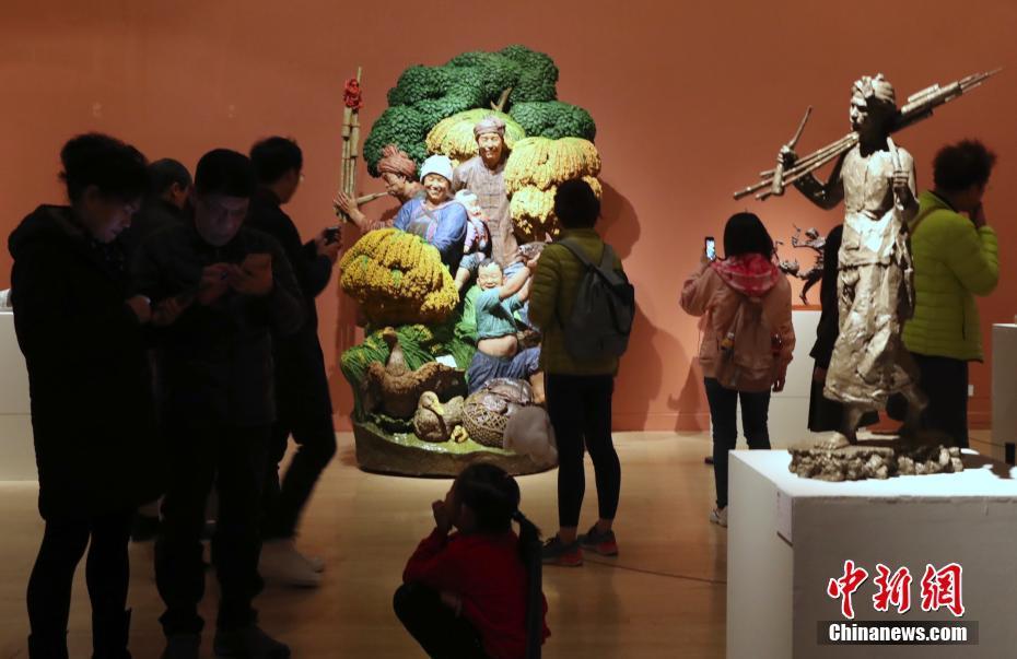 3月2日,由中国美术馆、中国城市雕塑家协会主办的“中国美术馆庆祝中华人民共和国成立70周年系列展:民族大团结——全国雕塑艺术作品展”在中国美术馆开展。本次展览共征集作品600余件,经专家委员会初评、复评,有220余件作品入选,它们与中国美术馆馆藏的部分民族题材雕塑一起,为全国人民奉上这场精彩纷呈的民族文化盛宴。 中新社记者 杜洋 摄
