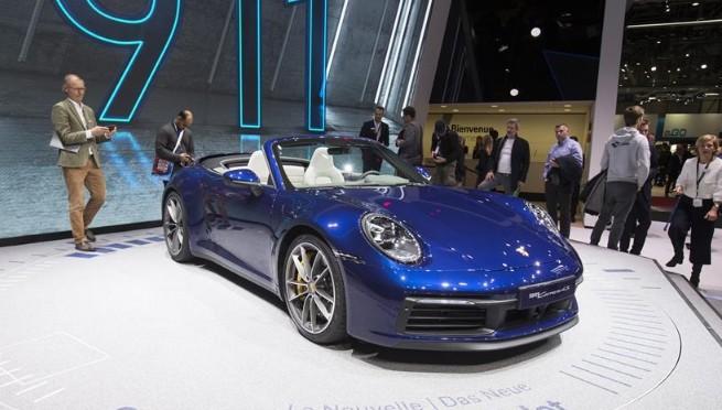 3月5日,在瑞士日内瓦国际车展媒体日预展上,人们观看保时捷全新一代911 4S Cabriolet跑车。 第89届日内瓦国际车展当天举行媒体日预展。车展将于3月7日正式拉开帷幕,全球约220家汽车及零配件厂商参展。 新华社记者 徐金泉 摄