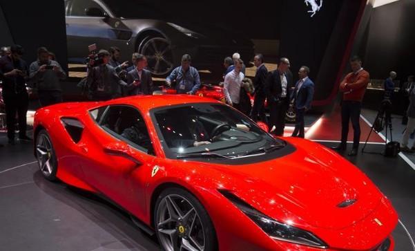 3月5日,在瑞士日内瓦国际车展媒体日预展上,人们观看法拉利新款跑车。 第89届日内瓦国际车展当天举行媒体日预展。车展将于3月7日正式拉开帷幕,全球约220家汽车及零配件厂商参展。 新华社记者 徐金泉 摄