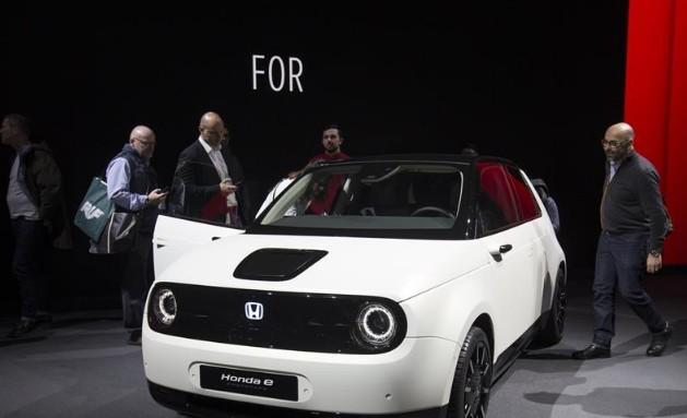 3月5日,在瑞士日内瓦国际车展媒体日预展上,人们观看本田Honda e Prototype小型电动车。 第89届日内瓦国际车展当天举行媒体日预展。车展将于3月7日正式拉开帷幕,全球约220家汽车及零配件厂商参展。 新华社记者 徐金泉 摄