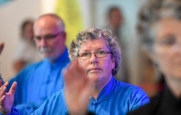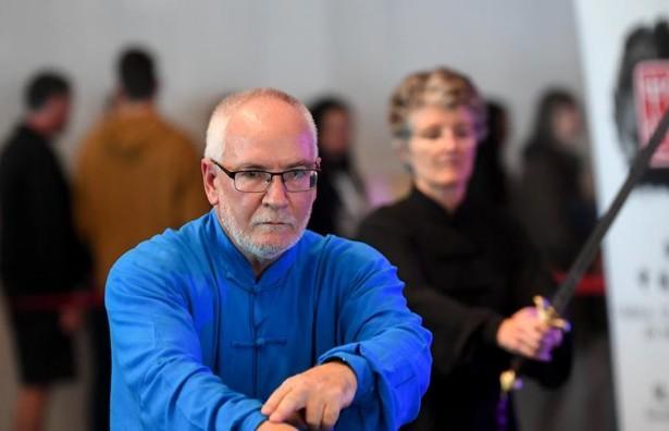 3月9日,在位于新西兰惠灵顿的新西兰国家博物馆,中国文化中心太极班的成员表演太极剑。 伴随着喧天的锣鼓声,“中国舞台日”9日在新西兰首都惠灵顿国家博物馆拉开帷幕?!爸泄杼ㄈ铡笔切挛骼脊也┪锕菸?019中新旅游年”举办的活动,新西兰中国文化中心应邀选送了丰富多彩的文艺表演。 新华社记者 郭磊 摄