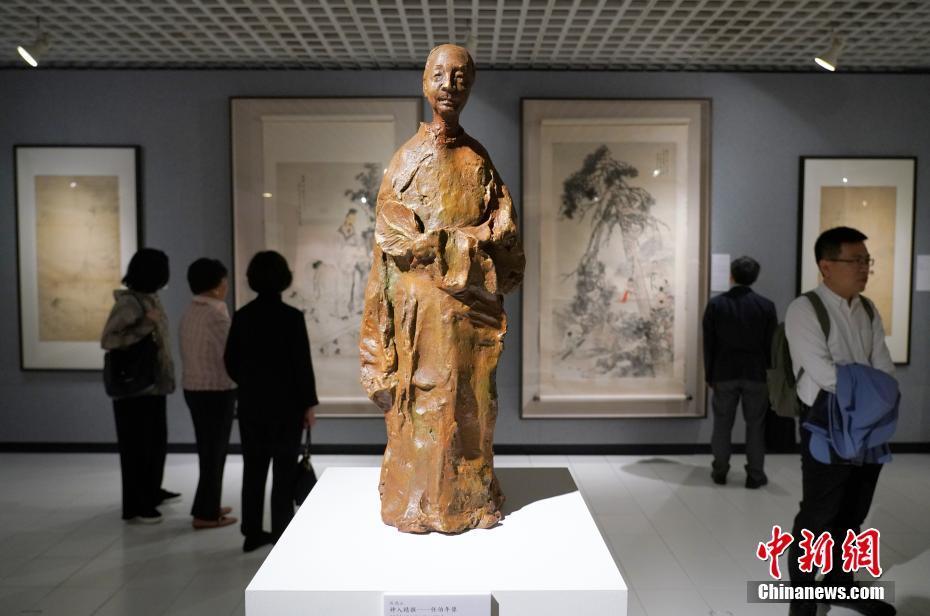 3月20日,“妙笔传神:中国美术馆藏任伯年人物画特展”开幕典礼在香港中文大学文物馆举行。本次展览将于3月22日至8月18日在香港中文大学文物馆举行,这是香港首个任伯年人物画大型展览,共展出82件任伯年的画作,不少作品是首次公开展出。中国美术馆馆长吴为山特意为是次展览创作了任伯年塑像。中新社记者 张炜 摄