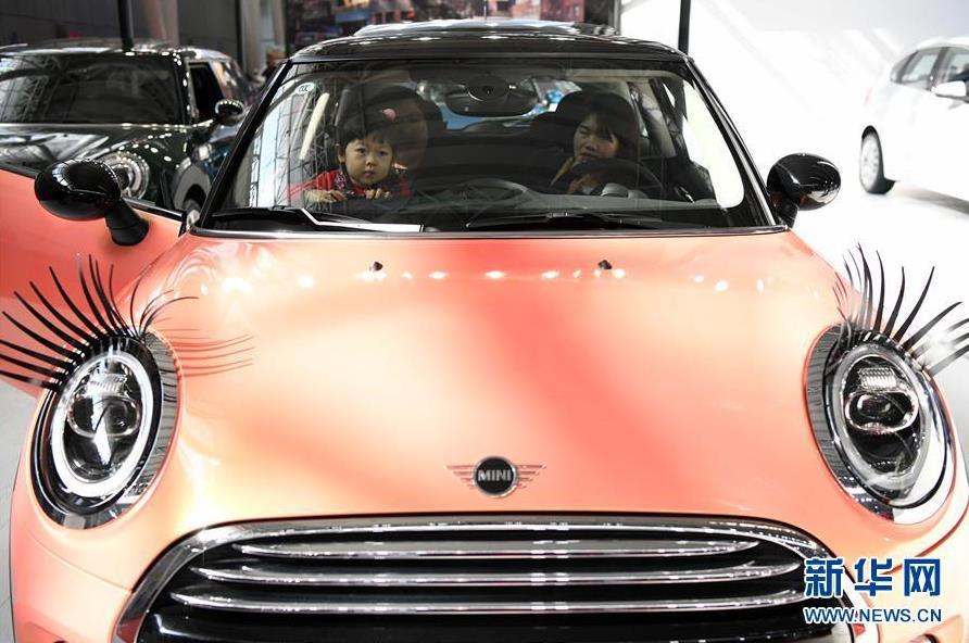 3月26日,市民在车展上进行上车体验。