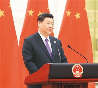 5月14日,国家主席习近平和夫人彭丽媛在北京人民大会堂举行宴会,欢迎出席亚洲文明对话大会的外方领导人夫妇及嘉宾。图为习近平在宴会上发表致辞。新华社记者 鞠 鹏摄