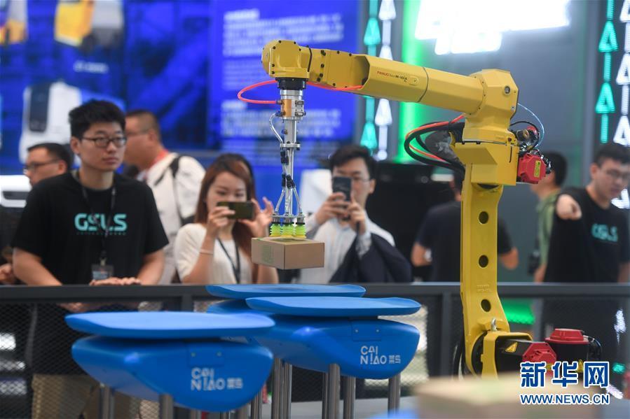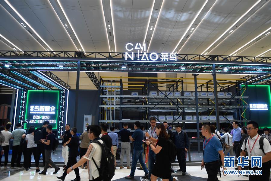 观众在菜鸟智慧仓展区参观 新华社记者黄宗治摄